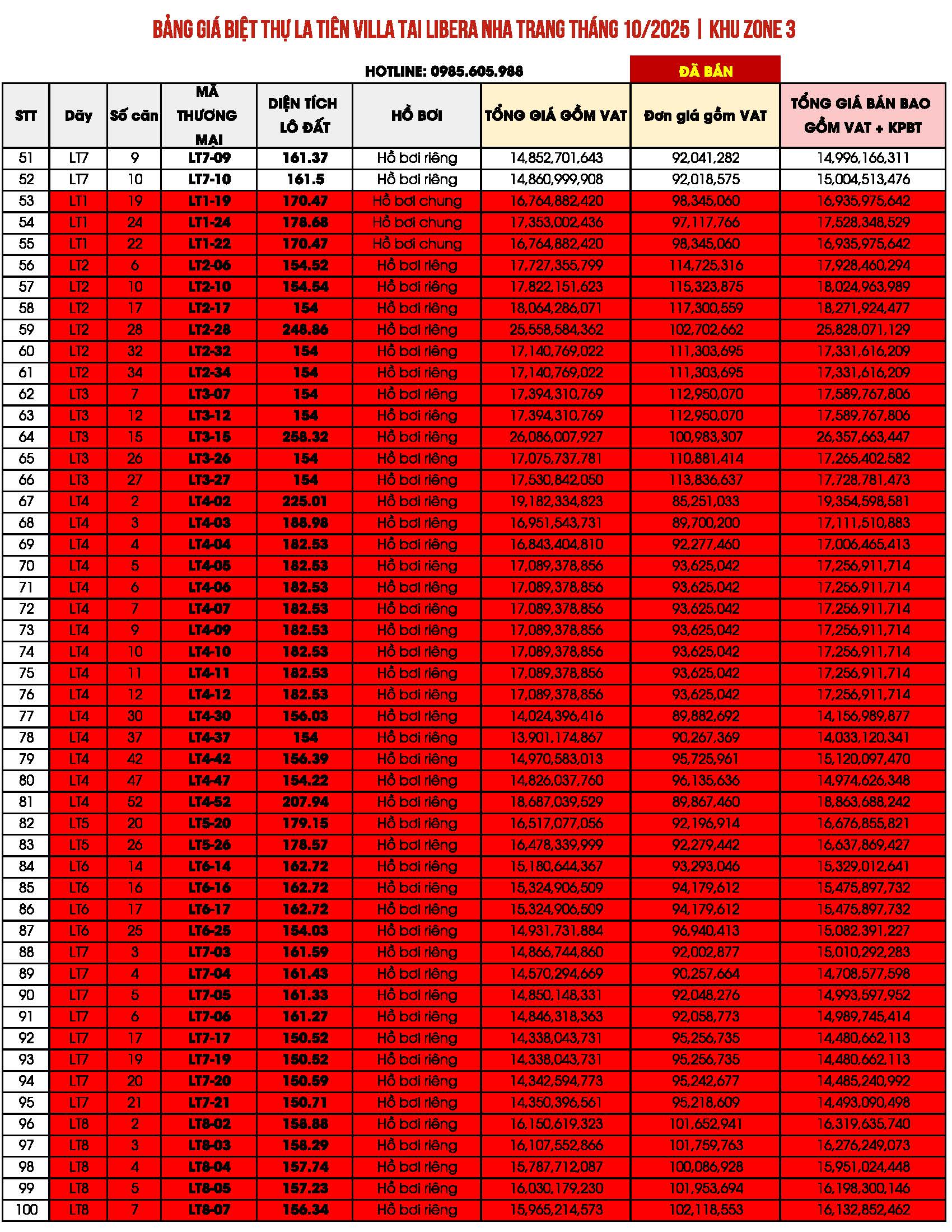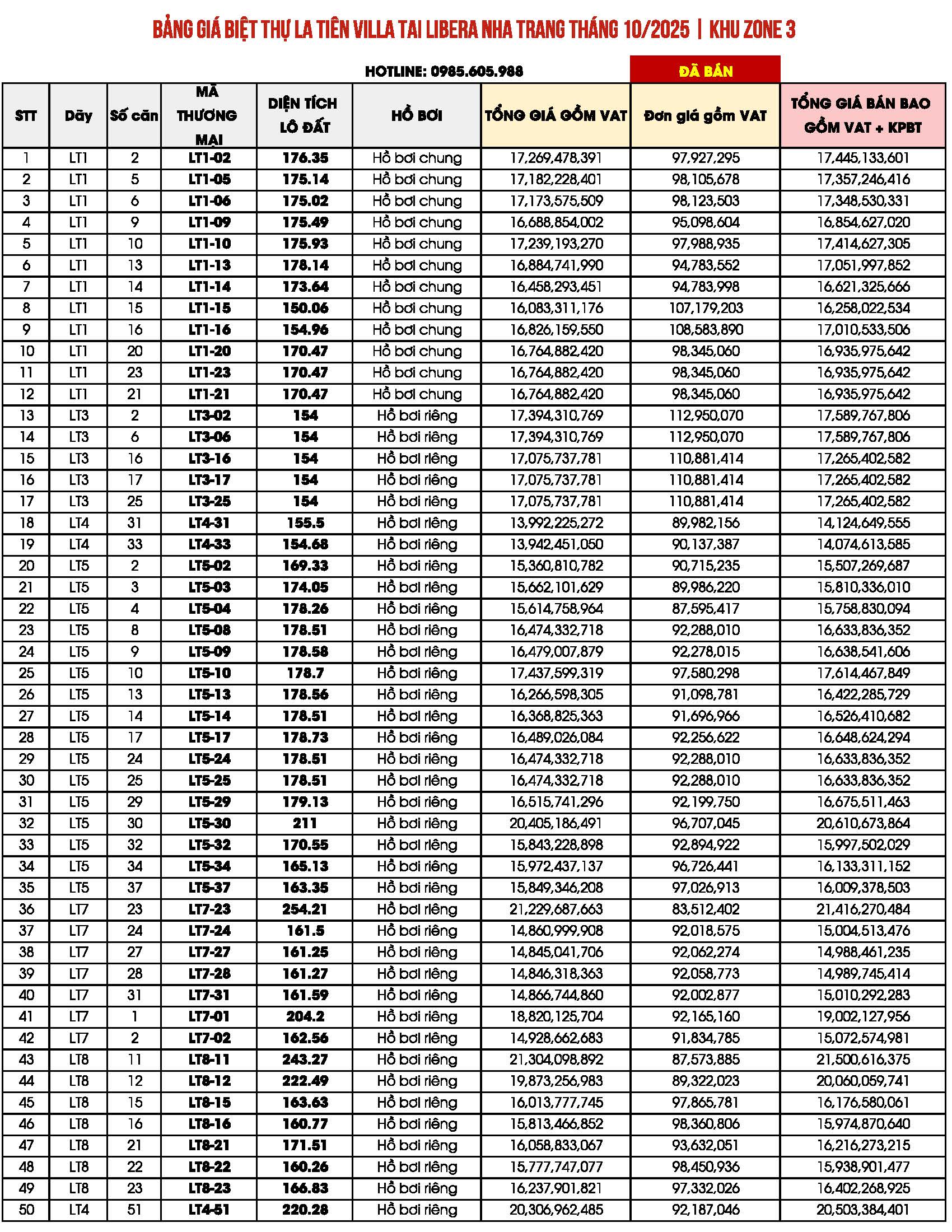 - Tháng 9/2025: mở bán đủ 668 căn biệt thự tại tiểu khu Zone 3 La tiên Villa Nha Trang