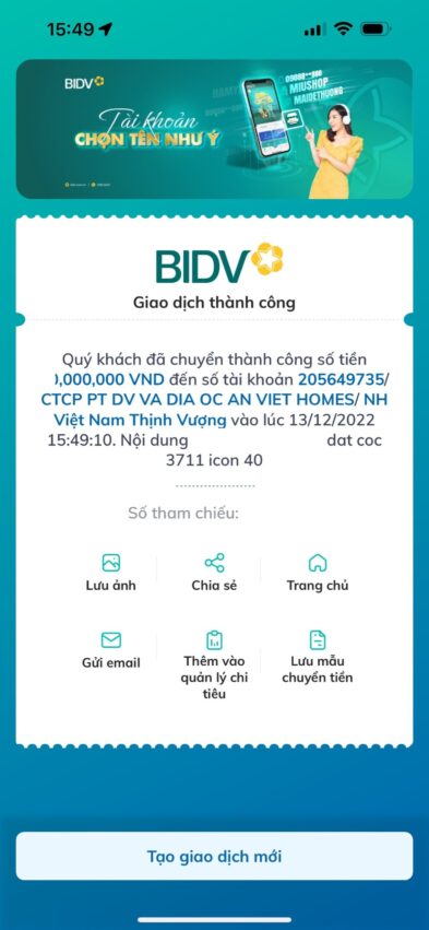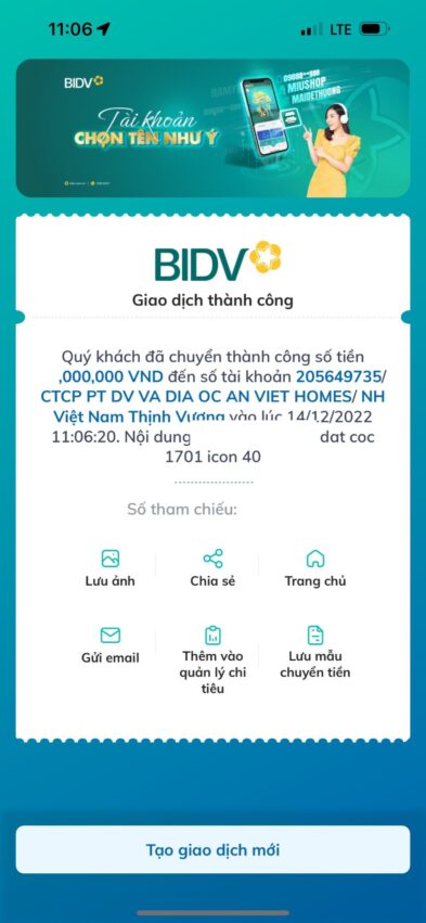 Giao dịch thành công của Icon40 Hạ Long cập nhập mới
