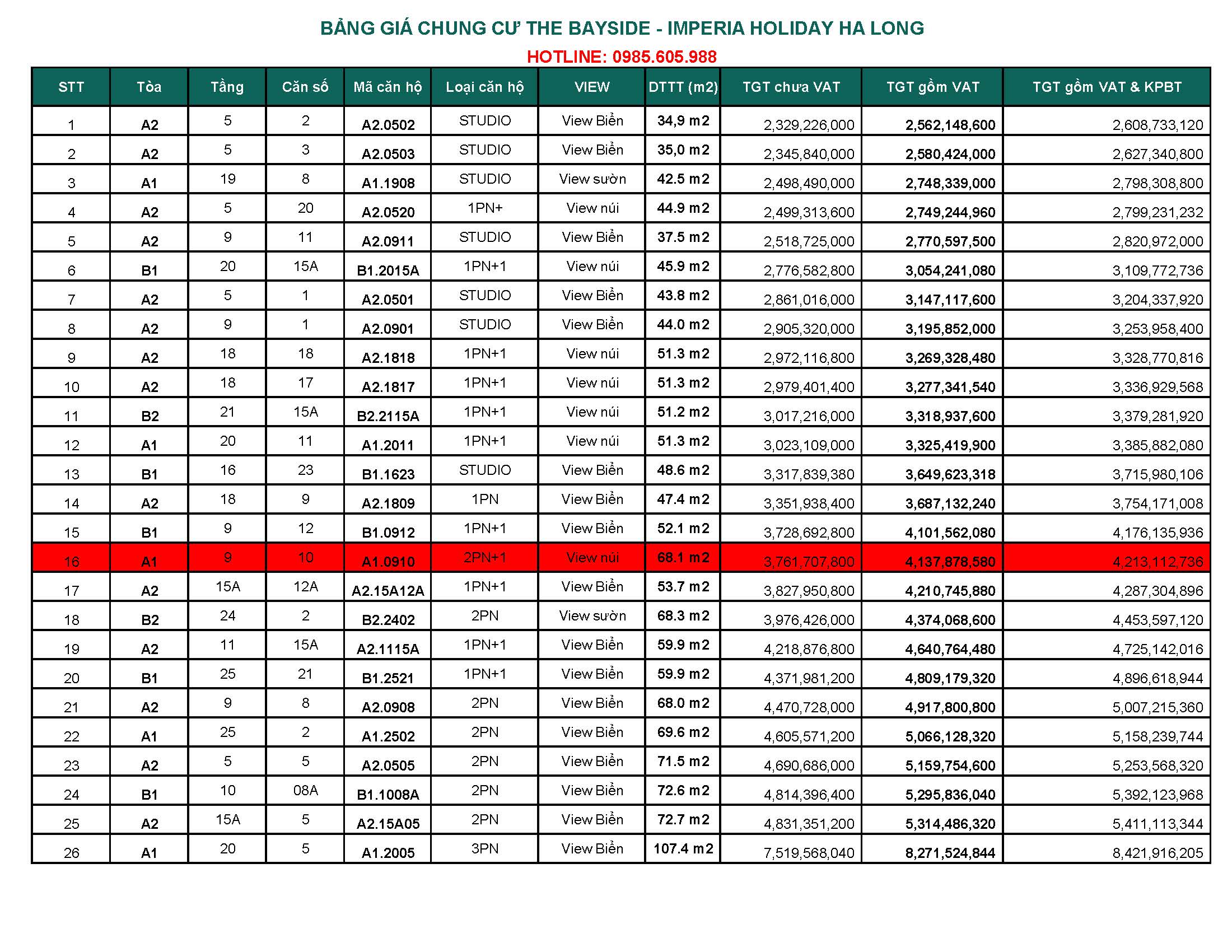 Như vậy, quý khách đã xem chi tiết thông tin về bảng giá căn hộ chung cư Imperia Holiday Hạ Long của chủ đầu tư Mik Group