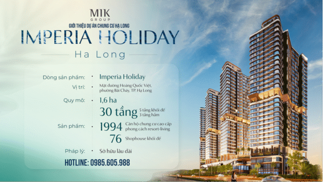 Giới thiệu Imperia Hạ Long Quảng Ninh 2025 DỰ ÁN IMPERIA HOLIDAY HẠ LONG BY MIK GROUP IMPERIA HOLIDAY HA LONG ( gọi tắt là chung cư Imperia Hạ Long ) là dự án căn hộ cao cấp đầu tiên của MIK Group phát triển tại khu đô thị Hạ Lon Marina thuộc phường Bãi…