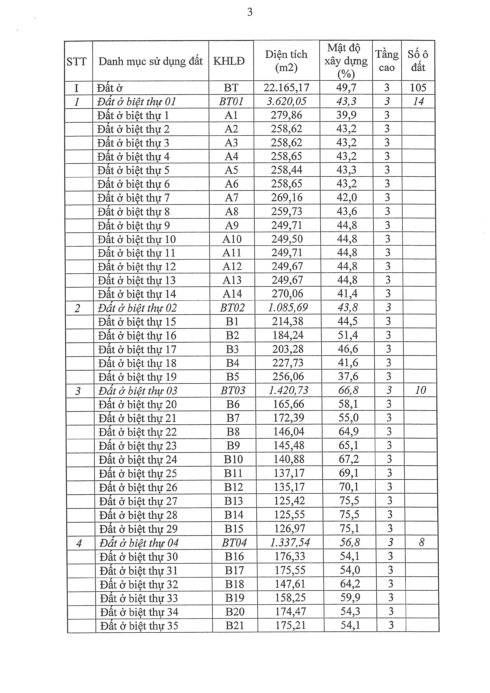 Thông tin chi tiết mặt bằng phân lô biệt thự