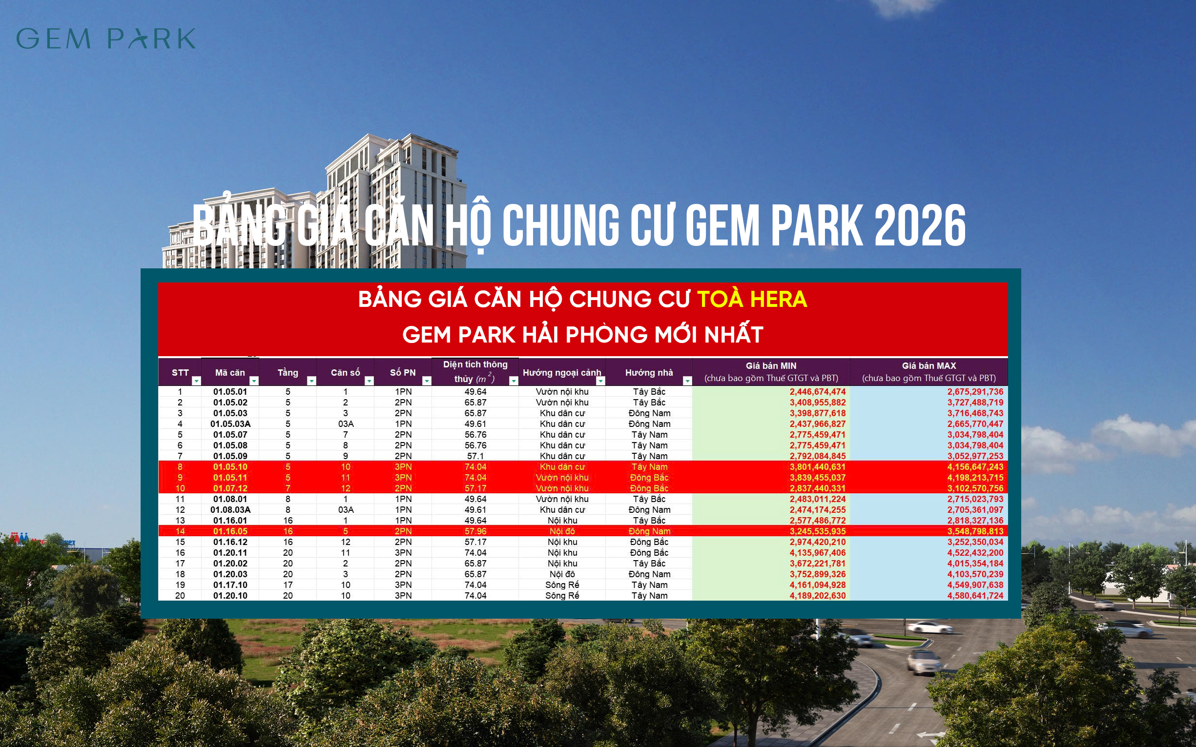 GIÁ BÁN CĂN HỘ CHUNG CƯ GEM PARK HẢI PHÒNG 2026
