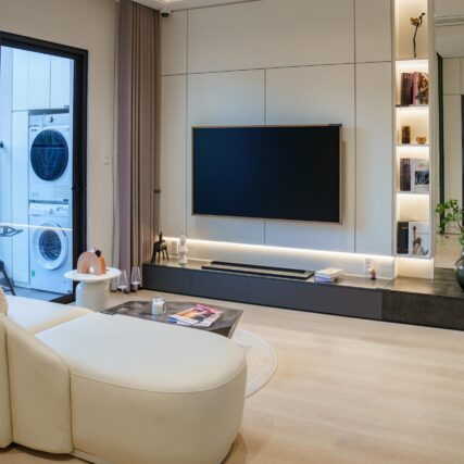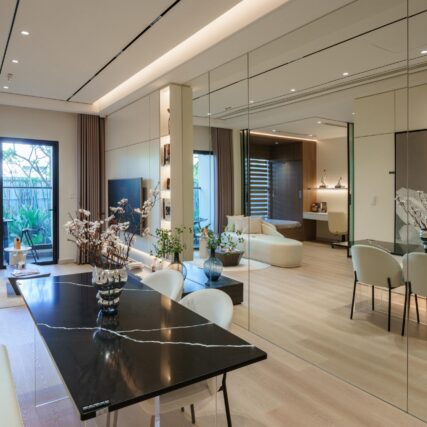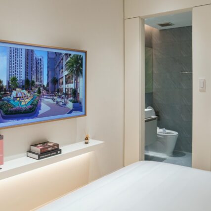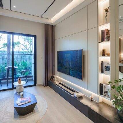 Nội thất thiết kế tại căn hộ chủ đầu tư hướng đến phong cách hiện tại với gam màu sáng mang đến không gian sống trẻ, năng động và thoải mái.