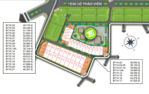 - Phân khu Thảo Viên: Biệt thự dãy BT14, BT15