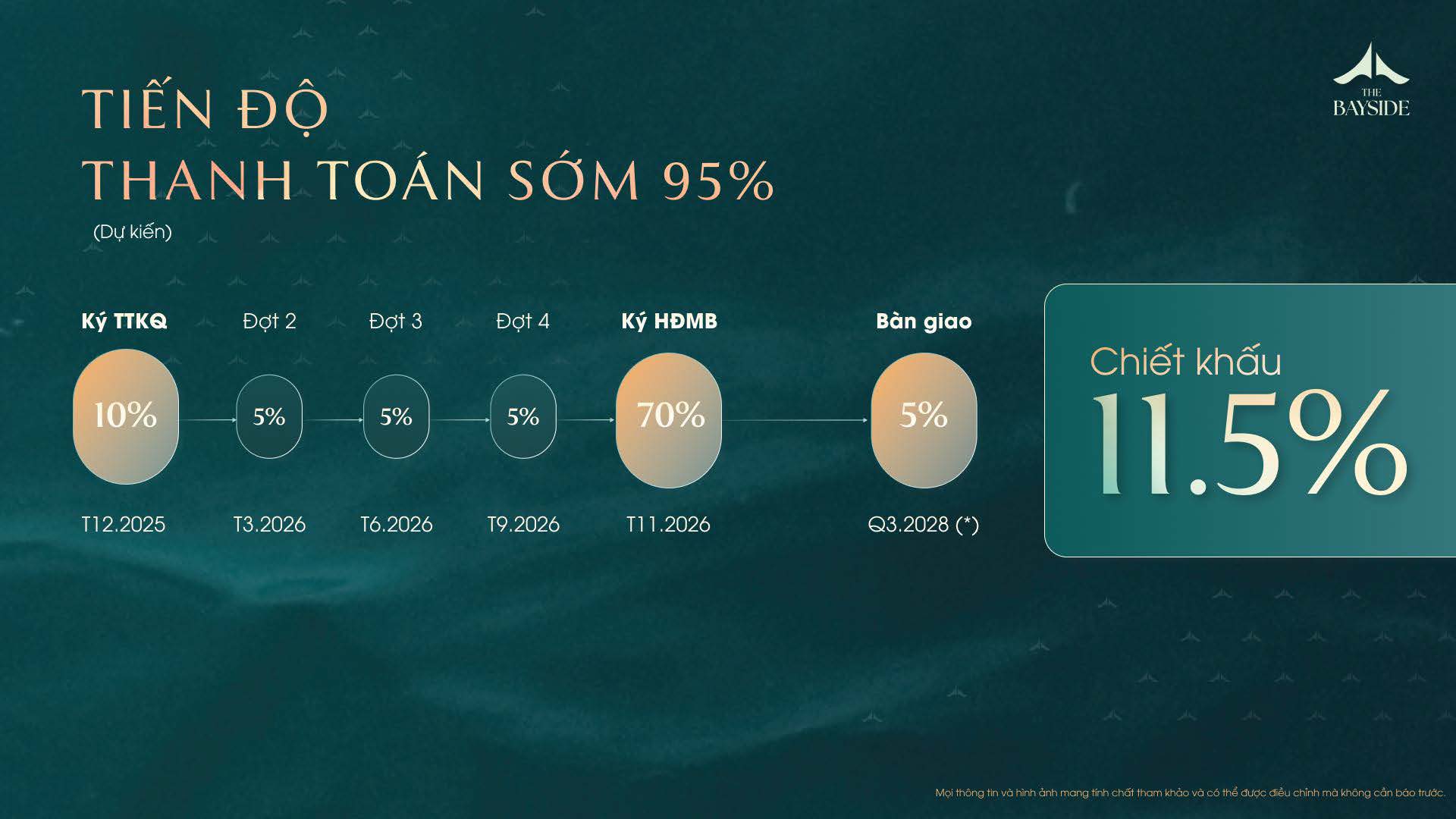 • Chiết khấu 11.5% dành cho KH chọn Thanh toán sớm 70% đợt 1