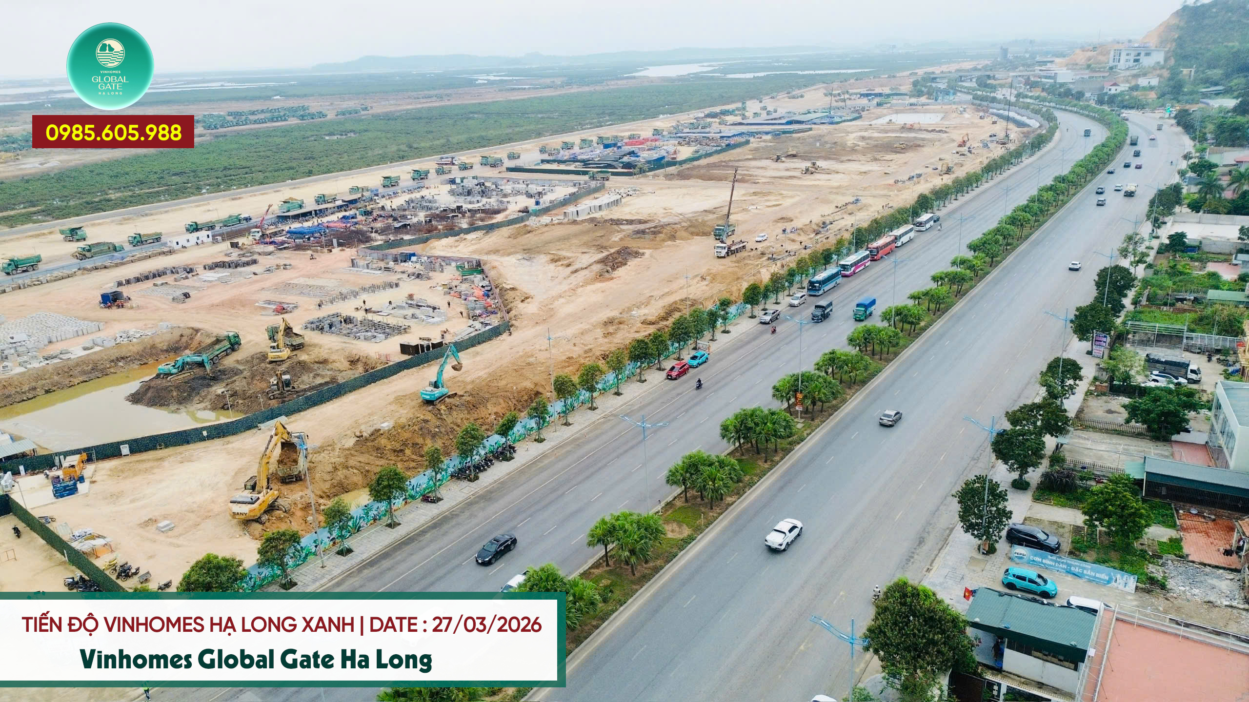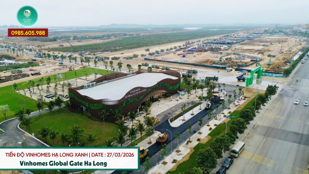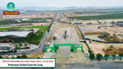 Cập nhật hình ảnh tiến độ thi công dự án Vinhomes Hạ Long Xanh ngày 27/3/2026 cho thấy công trường đang thi công nhộn nhịp với hàng trăm chuyến xe cùng vật liệu xây dựng tại dự án Vinhomes Globa Gate Hạ Long. Chủ đầu tư dự án đang đẩy nhanh công đoạn thi công hạ tầng giao thông, hệ thống điện, hệ thống cấp thoát nước để sớm tiến hành xây dựng những block đầu tiên theo kế hoạch đã định. Đặc biệt, Văn phòng Bán Hàng của dự án Vinhomes Hạ Long Xanh đang gấp rút hoàn thiện để sớm cho ra mắt vào tháng 4, nơi sẽ diễn ra những sự kiện mở bán và cũng là nơi khách hàng đến thăm quan và nghiên cứu sản phẩm mở bán tại đây.
